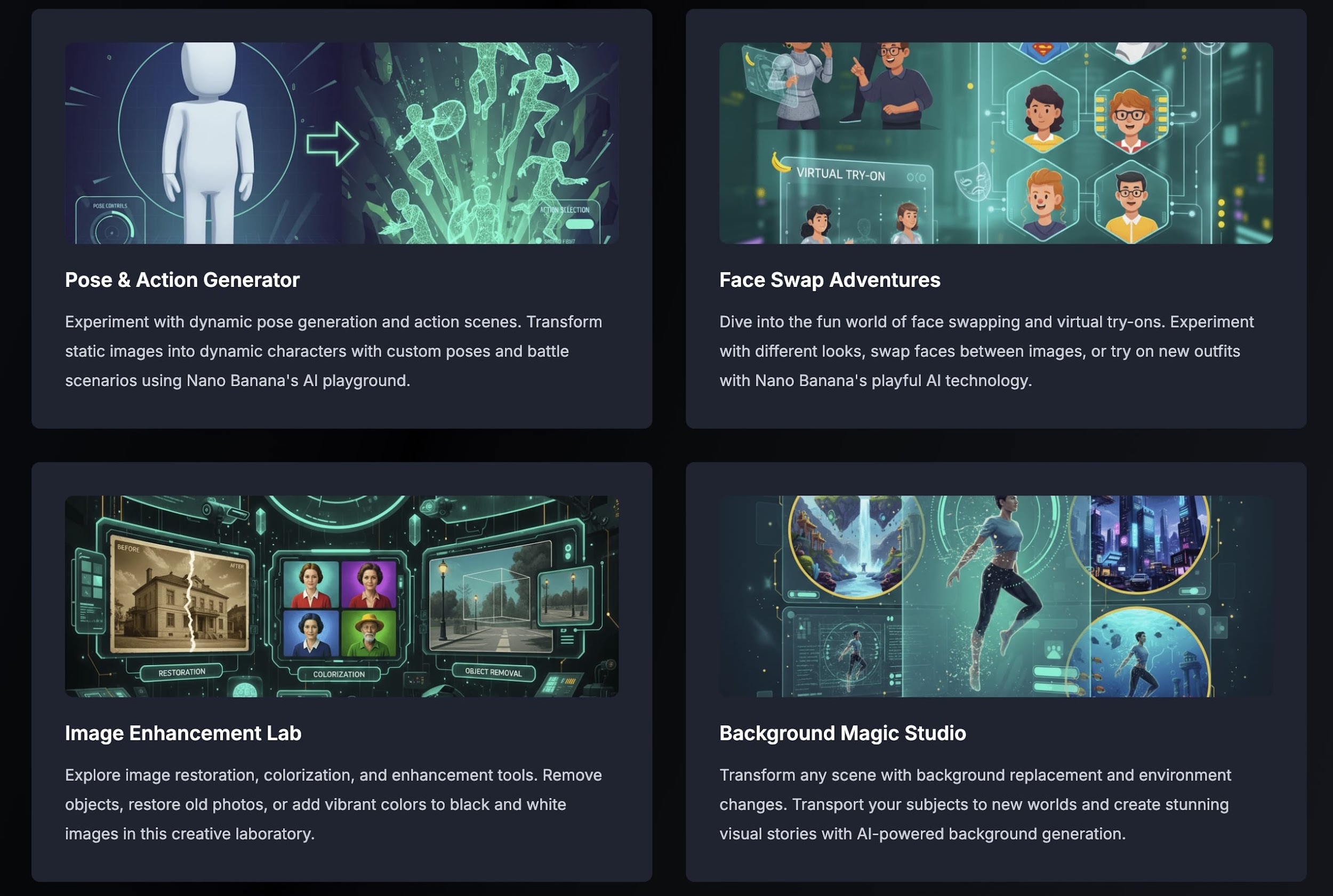 Nano Banana Games showcases sophisticated integration of computer vision models working in concert. The pose generation system employs advanced human pose estimation algorithms combined with GANs or diffusion models, creating realistic character positioning that respects anatomical constraints and kinematic principles.